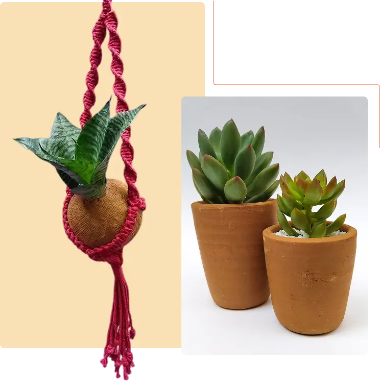 Criamos beleza viva através de técnicas manuais e matérias primas naturais.